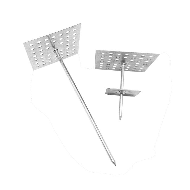 ◪ Perforated Base Hangers consists of a pin , firmly mounted on a perforated Base . It is used in conjunction with Self Locking Insulation Washers, or Speed Clips, and mounted using general purpose adhesive. It is designed to fix efficiently insulation on concrete or any other rough surfaces .